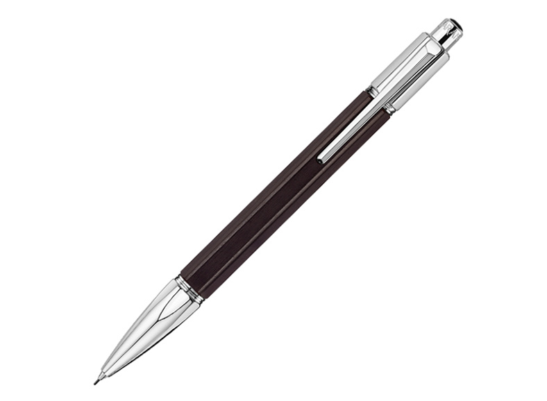 希少価値の高いエボニーウッドを使用し、ラグジュアリーを極めたシャープペンシル。 しっとりとした艶をたたえたダークブラウンと、磨きぬかれたシルバーのコンビネーションが限りなく美しい、まさに憧れのモデルです。