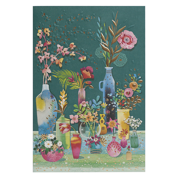 花瓶に飾られた色とりどりの花や植物が美しい多目的カードです。