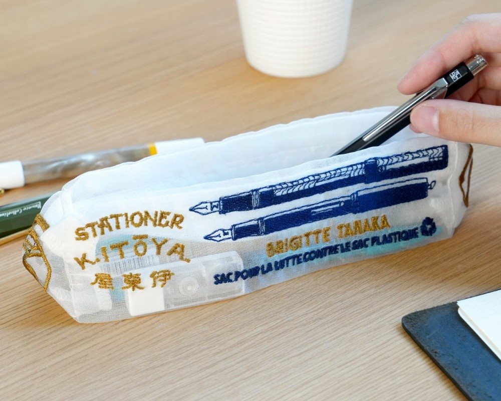 伊東屋とパリの「ブリジットタナカ」がコラボしたオリジナルオーガンジーのバッグとポーチ。