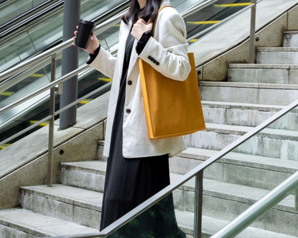 荷物を運ぶ姿がいつも美しくスマートであるようにと設計されたマチ付きトート。