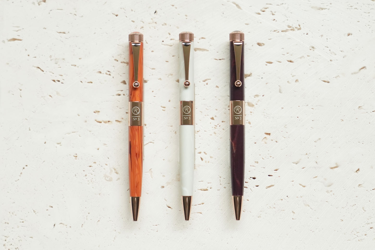 筆記具は、No. 3ボールペン 細軸/太軸/エクストラスリムレザーの3種が発売となりました。