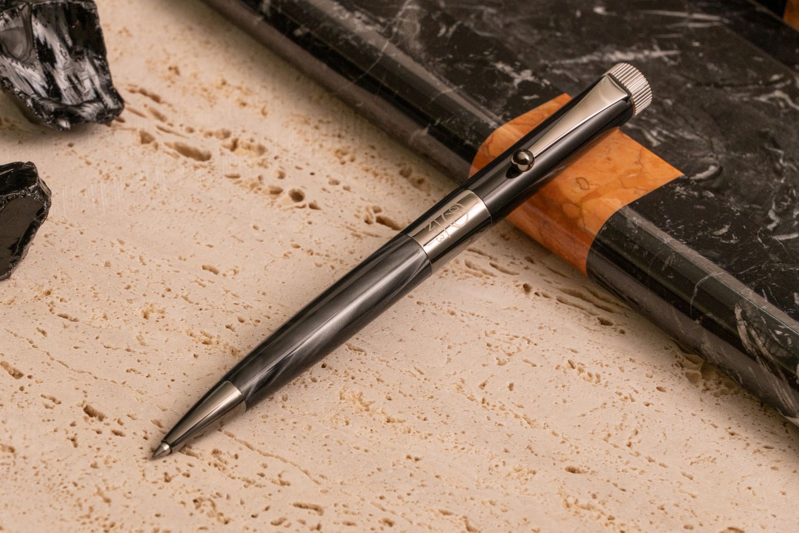 ブランドを代表するアイコニックなボールペン・ROMEO No.3 に、黒曜石を意味する「オブシディアン」の名を冠した2025年限定生産モデルが登場。