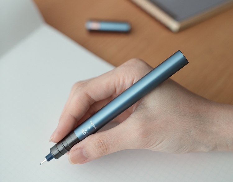金属製のボディは高級感があり、耐久性に優れています。素材にアルミニウムを採用したことで、金属製でありながら軽量化を実現。軸にはローレット加工を施しており、しっかりとグリップして筆記することができます。