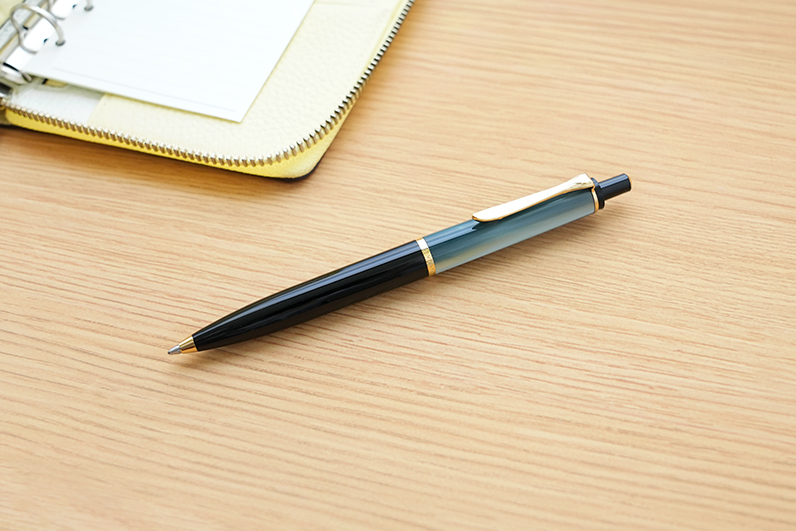 同じくペリカンのスーベレーン K400 ボールペンもほぼ同じサイズです。いずれも片手でも軽やかに使用できるノック式。