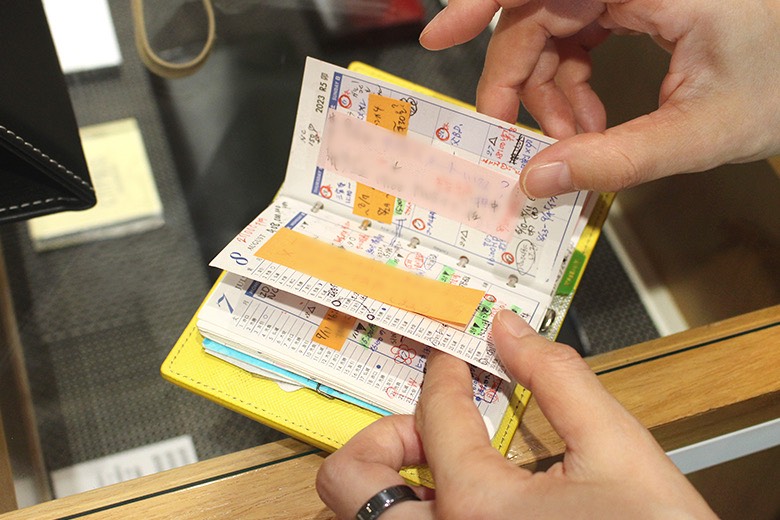 販売スタッフには自分のデスクというものがないので、この手帳が私の“デスク”です。